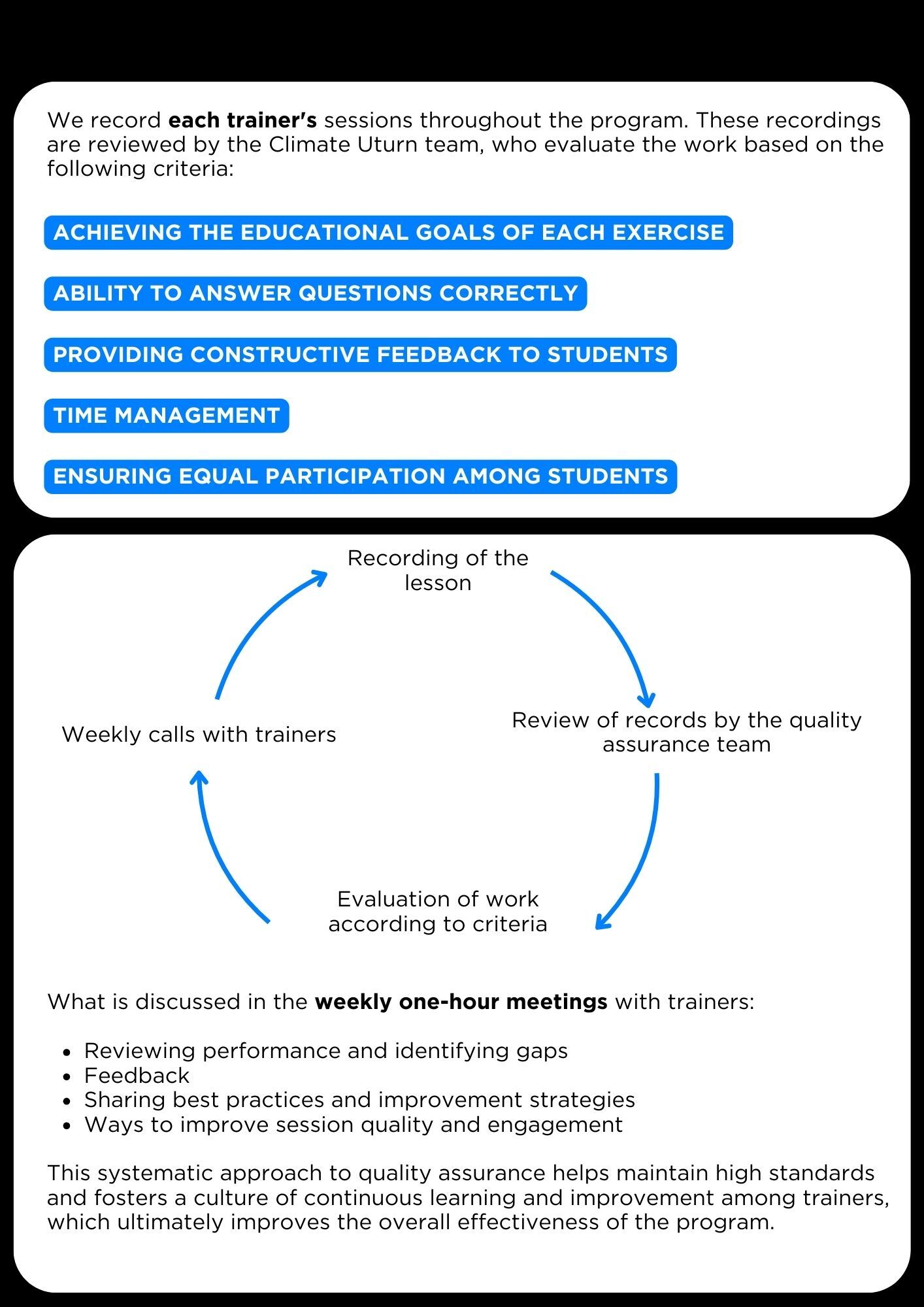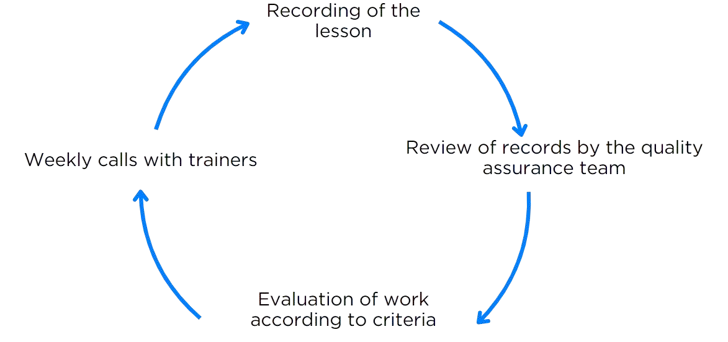 Trainers are taught the content and monitored weekly to ensure the content is delivered correctly.